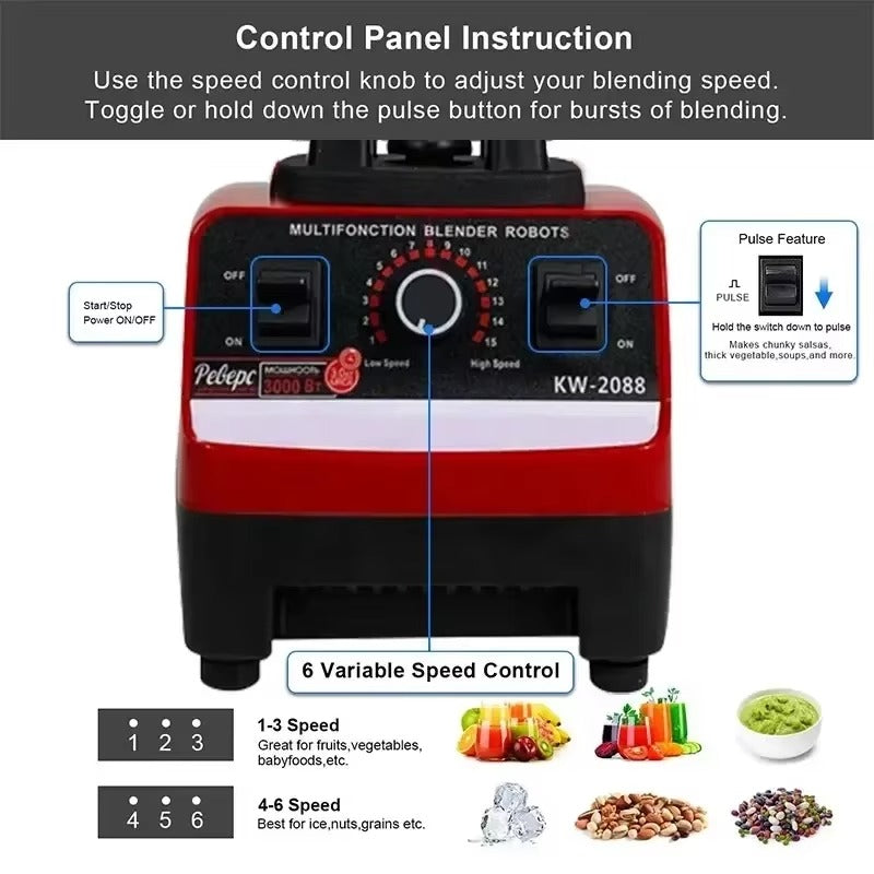 Equipped with a 4500W motor, this blender ensures effortless blending, crushing, and grinding of even the toughest ingredients. Perfect for both home and professional use.