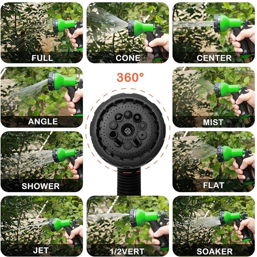 • The expandable garden hose nozzle provides 8-function water spray mode, and the rubber handle is easy to grasp and anti-slip. The extended garden hose has many uses, such as car cleaning, gardening, yard cleaning, pet bathing, etc.